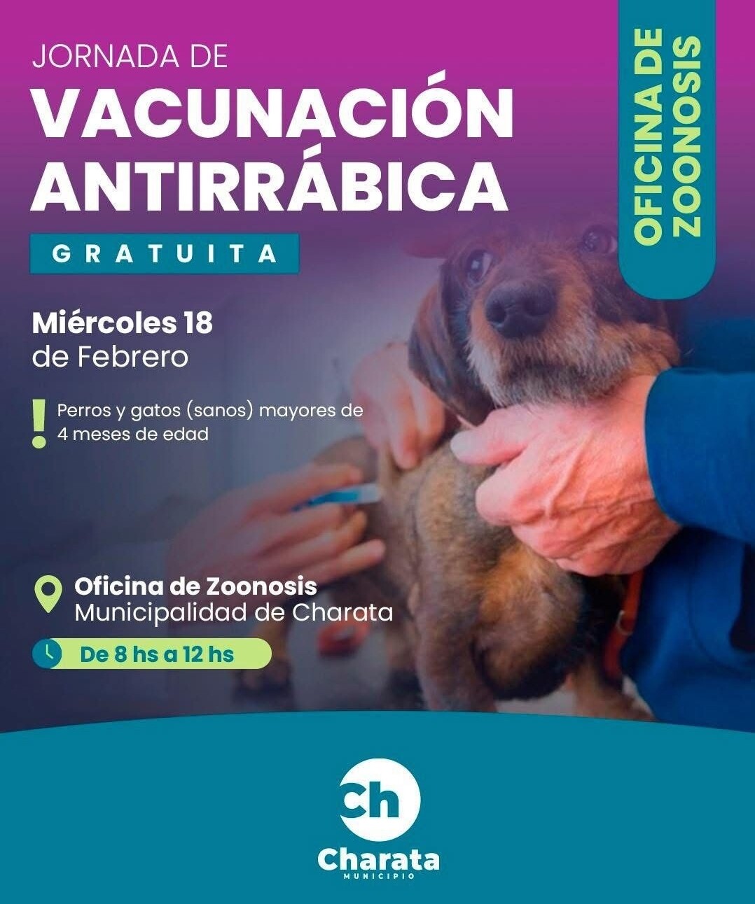 Este miércoles 18 de febrero se realizará la vacunación antirrábica para perros y gatos sanos, …
